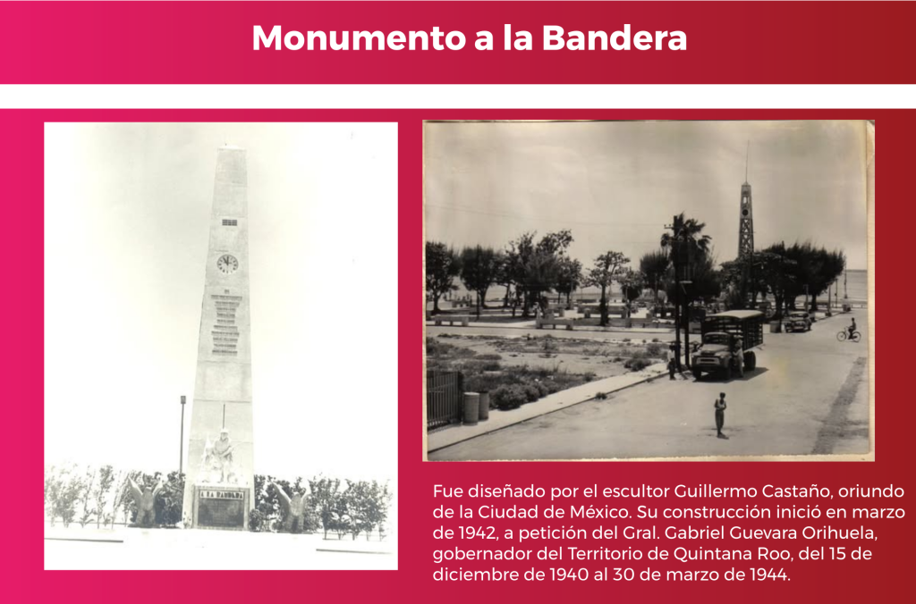 Fue diseñado por el escultor Guillermo Castaño, oriundo de la Ciudad de México. Su construcción inició en marzo de 1942, a petición del Gral. Gabriel Guevara Orihuela, gobernador del Territorio de Quintana Roo, del 15 de diciembre de 1940 al 30 de marzo de 1944, como parte de una propaganda nacionalista al estallar la II Guerra Mundial.